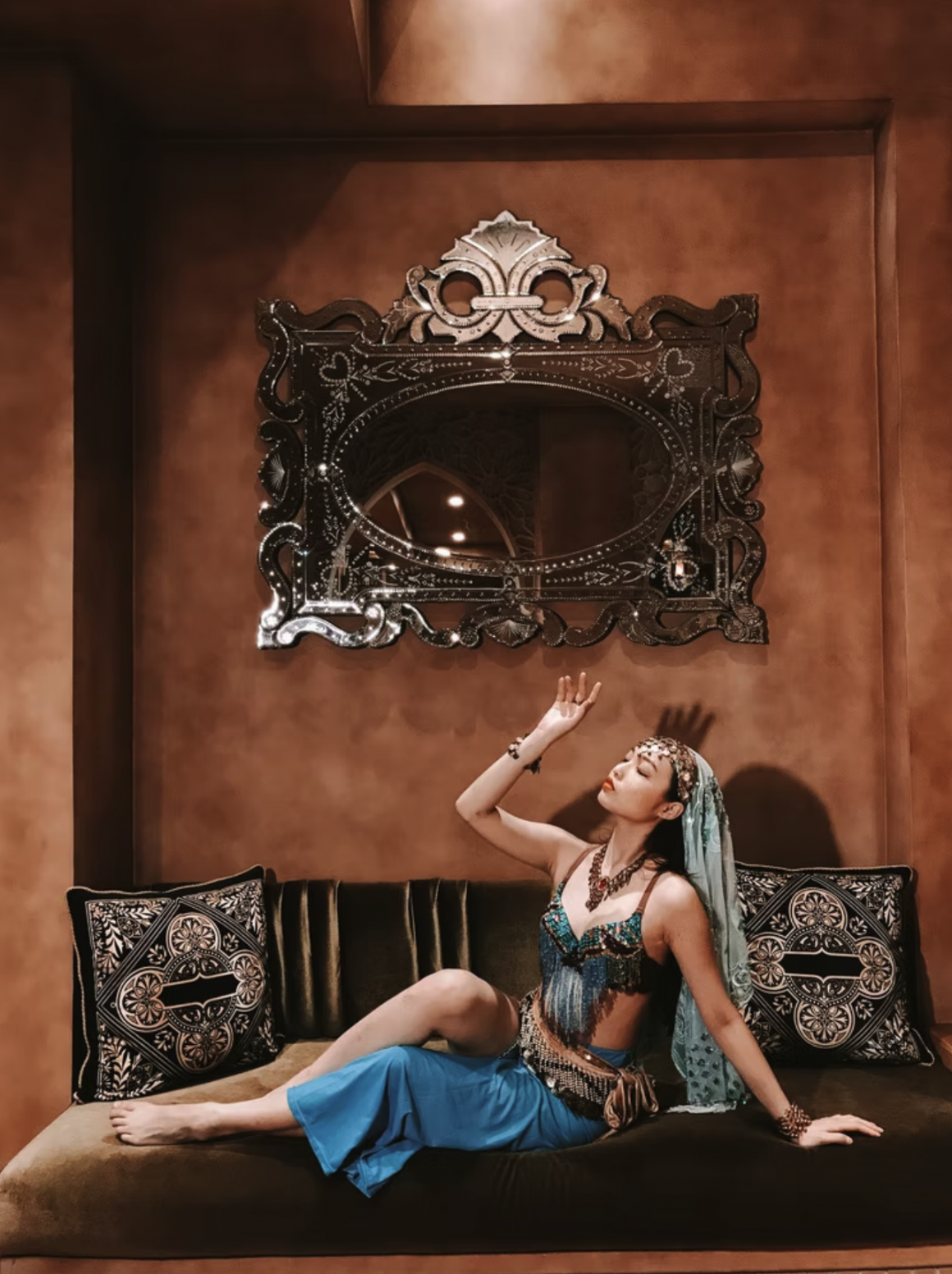 肢體動作可以參考下圖,兩隻腳彎曲的程度不同,會讓曲線更有層次感,身體微側45度,看起來更苗條!