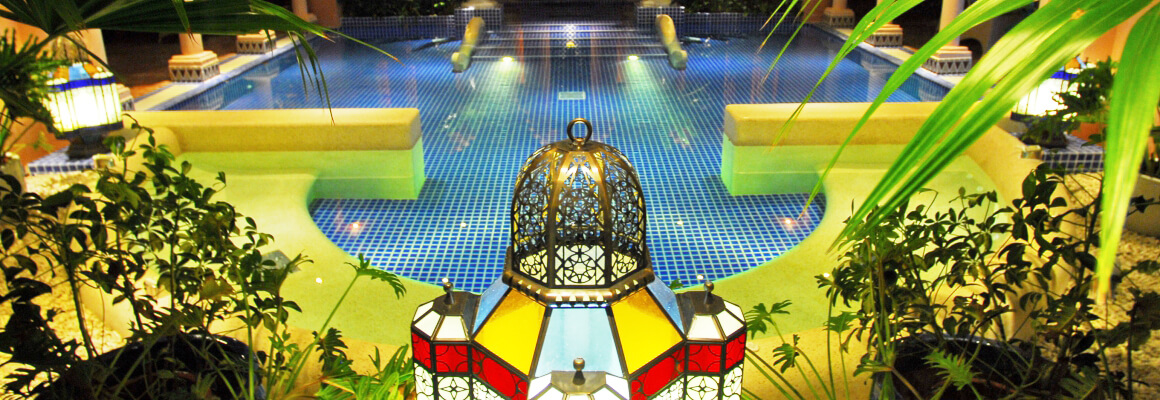 精緻手工打造雕花、拱門、列柱及頂級鑲銀嵌銅之藝術傢俱,展現出摩洛哥古老的工藝之美。